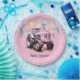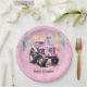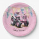 Assiettes En Carton Drapeau rose Tracteur Baby shower fille d'aquarell