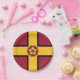 Plaque papier avec design avec un drapeau du comté historique de Northamptonshire, en Angleterre, Grande-Bretagne; drapeau marron avec une croix d'or et le rose traditionnel du comté dans le centre