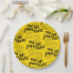 Faites de la magie culinaire à la fête avec cette plaque en papier, qui présente un motif répétitif du jeu de mots "We be jammin" crocheté par de mignonnes jarres miniatures souriantes dansant joyeusement sur un arrière - plan jaune vif. Aménagement, oeuvre d'art et design © W.H. Sim. Voir plus sur zazzle.com/wordsofwhimsy