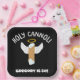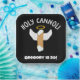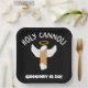 Ces assiettes amusantes sont parfaites pour les fêtes d'anniversaire et plus encore. Ils arborent le slogan SAINT CANNOLI au-dessus d'une illustration d'un cannoli avec des ailes de halo et d'ange. Votre message personnalisé apparaît sous le graphique. Le texte blanc en gras est défini contre un arrière - plan noir.