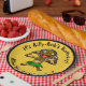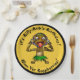 Plaques en papier uniques, drôles et totalement cool ornées d'un design original et original de l'artiste numérique, Leslie Sigal Javorek présente un comique Native Witch Doctor de l'île du Pacifique en jupe d'herbe, se balançant les oreilles tout en collant sa langue sur un arrière - plan jaune vif criblé de noir. 2 champs de texte personnalisés pour personnaliser, par défaut : "C’est l’anniversaire de Billy-Bob !" & "Blow Yer Raspberries !"