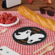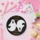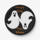 Ce Duo Ghomajorité attend une fête d'Halloween pour servir des rafraîchissements et du plaisir. Ces assiettes comportent un duo de fantômes pas si effrayants avec un message simple pour une Happy Halloween.