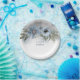 Dusty bleu et argent parties scintillant élégante aquarelle fleurs plaques de papier