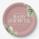 Assiettes En Carton Dusty Rose Élégant Baby shower fille verte