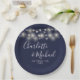 Assiettes En Carton Éclairage de chaîne Signature Script Mariage bleu