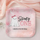Cette plaque de papier de 1er anniversaire est parfaite pour une fête d'anniversaire d'Halloween. Cette conception de ceintures comporte une représentation graphique d'un fantôme portant un arc rose, et est accentuée par le texte "Éffrayant ONE".