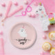 Éffrayant un Halloween mignon fantôme 1er anniversaire plaque papier. Design moderne sur le thème de l'Halloween pour une fête éffrayante ! Cette plaque de papier d'anniversaire présente un heureux fantôme portant un casquette rose avec un arrière - plan rose poussiéreux.