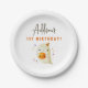 Une mignonne plaque en papier Halloween pour correspondre à notre design "Un Mignonne Halloween Sexe Neutre Anniversaire Éffrayant". Ce design mignon et neutre est illustré à la main par un fantôme souriant portant un casquette de fête portant un citrouille orange, entouré d'étoiles. Parcourez la collection liée sur cette page pour trouver les objets correspondants ou visitez notre magasin pour plus de dessins de fête d'anniversaire d'Halloween.