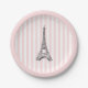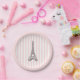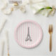 Enjoy our eiffel tower Paris illustration pink stripe paper plate design.