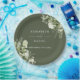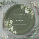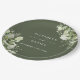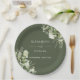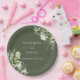 Élégante végétale florale olive verte mariage assiette en papier personnalisée avec vos noms et date de mariage spéciale. Conçue par Thisisnotme©