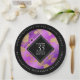 Célébrez le 33e anniversaire améthyste mariage avec ces assiettes en papier élégantes! Un élégant lettrage noir et blanc avec des confettis hexagonés dorés sur un améthyste arrière - plan violet ajoute une touche mémorable pour cette occasion spéciale et cette étape importante. Personnalisez avec le nom du couple, la date(s) du mariage, et des messages de félicitations sur le rebord. Design © W.H. Sim. Voir plus sur zazzle.com/expressionsoccasions