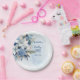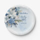 Assiettes En Carton Elégant Baby shower Floral d'hiver bleu