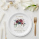 Assiettes En Carton Elégant Bleu Bourgogne Aquarelle Fleurs Baptême