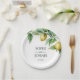 Assiettes En Carton Élégant chaux jaune fleuri blanc bleu mariage