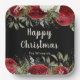 Pretty Christmas party paper plate with red flowers and green foliage. The words can be changed to suit your own details or requirements. Would be perfect for a Christmas dinner party or holiday party.