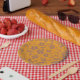 Assiettes en papier design dentelle or orange, inspirées de l'époque vintage, parfaites pour les fêtes, les anniversaires, les fiançailles, les mariages