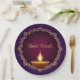 Design élégant avec un diyas dans un cercle doré fleuri et un arrière - plan violet-violet pour Diwali.