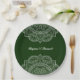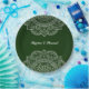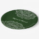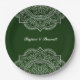 Une belle plaque en papier personnalisée couleur vert émeraude et blanc, avec un mandala sari d'inspiration indienne exotique, comme un motif au design floral. Cette élégante et belle plaque en papier de style indien moderne est parfaite pour un mariage, une fête de fiançailles, une fête d'anniversaire, un dîner de répétition, une douche nuptiale ou une douche en couple avec un thème ethnique asiatique, marocain ou des nuits arabes. Il peut être personnalisé avec le nom ou les initiales des mariées et mariées. Grande plaque en papier pour une fête à thème diwali. vert hiver, vert émeraude, vert foncé Partie de l'Elegant Simple Emerald Green Paisley Indian Hindu Collection. https://www.zazzle.com/collections/elegant_simple_emerald_green_paisley_indian_hindu-119082435382548323?rf=238642071267668202