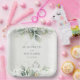 Célébrez votre union avec une touche d'élégance sobre. Nos assiettes de mariage personnalisées présentent une aquarelle délicate et peinte à la main, dans un décor de verdure d'eucalyptus, évoquant un sentiment de beauté intemporelle. Customisez-les avec les noms de la mariée et du marié et votre date de mariage pour un détail vraiment personnel.