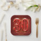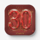 This striking paper plate celebrates a 30th birthday with vibrant flair. The design prominently features a colossal "30" crafted from magnificent, faceted ruby-red crystals, outlined in gleaming gold. Above and below, "Happy Birthday" gracefully arcs in elegant golden script. The deep red background is playfully accented with scattered golden confetti, creating a luxurious and festive atmosphere. Below the dazzling numbers, a customizable name adds a personal touch. This plate isn't just for serving; it's a vibrant, eye-catching design piece for your special celebration.
