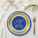 Assiettes En Carton Élégant Graduation Monogramme Bleu Marbre Or Huile