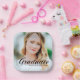 Un diplômé écrit en calligraphie noire élégante sur votre photo de portrait senior fait une belle et minimaliste plaque de papier de fête de graduation. Customisez avec votre nom et le lycée ou la classe universitaire de 2025 sous la typographie cursive.