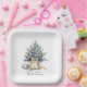 Assiettes En Carton Elégant Joyeux Arbre de Noël Or bleu Aquarelle