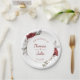 Ajoutez une touche d'élégance florale à votre table mariage avec ces belles plaques en papier de la suite Mariage Floral Aquarelle Bourgogne. Dotés d'un romantique parquet bordeaux et argent peint à la main, ces assiettes personnalisables sont parfaites pour des réceptions, des douches nuptiales ou des dîners de répétition. Élégant, fonctionnel et idéal pour élever votre paysage de table mariage.