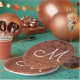 Elégant décor rustique en terre cuite blanc marron mariage de automne de la réception. Plaques de papier rond à monogramme floral. Chic, moderne, tendance, classe, design, belle motif métallique succulente. Copyright de l'image Marg Seregelyi Photography.