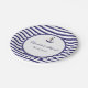 Customisez cette élégante conception de plaque de papier de la marine Mariage nautique. Motif à rayures bleu marine et blanc avec ancre de navire de marine au sommet et bordure en corde bleue et blanche.Le motif rayé bleu et blanc marine est également placé à l'arrière. Un modèle pour une personnalisation facile de vos détails mariages tels que les noms de mariée et de mariée ainsi que la date du mariage.Même design est disponible dans d'autres fournitures fixes mariages correspondantes pour porter le thème mariage nautique dans le style.