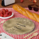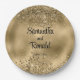 Une assiette de mariage présentant un élégant design à paillettes et feuille d'or faux.