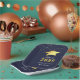 Elégante plaque de papier de la fête de graduation bleu marine et or avec un faux bouchon de graduation en feuille d'or métallique, confetti d'or, typographie manuscrite de script et année de classe avec FÉLICITATIONS et le nom de votre diplômé contre une couleur arrière - plan bleu marine modifiable vous pouvez changer à une couleur d'école ou de coordination de la couleur de thème de la fête en cliquant sur EDITER UTILISER OUTITRE DE CONCEPTION dans la section PERSONALIZE. ASSISTANCE : Pour obtenir de l'aide sur la modification/la personnalisation de la conception, le changement de couleur, le redimensionnement, le transfert de la conception à un autre produit ou la coordination d'éléments, contactez le concepteur AVANT DE COMMANDER via Zazzle Conversation ou makeitaboutyoustore@gmail.com.