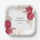 Assiettes En Carton Elégant Maroon Rose Floral Verdure Anniversaire