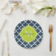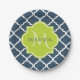 Assiettes En Carton Élégant Monogram Marine Green Quatrefoil et nom