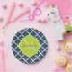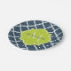 Elégante plaque de papier à motif bleu marine avec un badge à coquille dans un vert printanier dynamique que vous pouvez personnaliser en ajoutant votre nom et monogrammed initial à. Il fait partie de la collection Sailor Blue and Lime Punch Spring Collection.