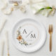 Assiettes en papier de mariage personnalisées avec monogramme élégant, cuivre moderne et botanique rustique.