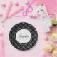 Donnez à votre style de fête un coup de pouce moderne avec ces élégantes bandes monogrammes plaques de papier motif avec coeur et cercles noirs et blancs girly. Personnalisez en ajoutant le nom et l'initiale monogrammée de la fille de la fête à la trame du cercle tendance.