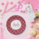 Offrez à votre style de fête un coup de pouce moderne avec ces élégantes plaques en papier motif monogramme rayé avec coeur et cercles rouge et blanc ceinturé. Personnalisez en ajoutant le nom et l'initiale monogrammée de la fille de la fête à la trame du cercle tendance.