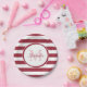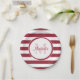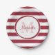 Élégantes assiettes de papier épais rayé rouge et blanc poivre chili. Personnalisez ce motif contemporain en ajoutant le nom et l'initiale monogrammée de la fille de l'heure. Ce monogramme girly fait partie de la collection Chili Pepper Stripes Party Essentials Summer Color Collection.