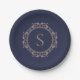 Assiettes En Carton Élégant Monogramme moderne classique Marine Cuivre
