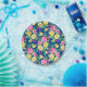 Assiettes En Carton Élégant motif floral rose fuchsia jaune