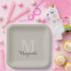 Assiettes En Carton Élégant Neutre Nom et Monogramme initial