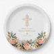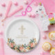 Assiettes En Carton Élégant or Ornate Cross Floral Baptism