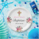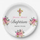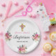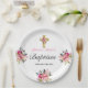 Assiettes En Carton Élégant PInk Floral Gold Cross Baptism