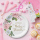 Belle, élégante rose et blanc printemps floral / rose et vert feuille botanique personnalisé plaques de papier baby shower personnalisées avec le nom de la mère-à-être dans une police de script de calligraphie or. Cette belle collection fonctionnera bien pour une douche bébé printemps ou été.