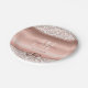 Parfaites pour d'élégants mariages d'or rose, ces plaques en papier présentent un arrière - plan à gradient métallique faux, un cadre damassé de parties scintillant d'or rose et un élégant monogramme de script de la mariée et du marié avec la date mariage. Trouvez plus de décoration de table mariage correspondant dans la collection.