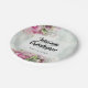 Ces belles assiettes feront de votre réception un lieu vraiment spécial. Elles présentent une belle décoration florale d'un bouquet de roses roses sur un arrière - plan turquoise bleu pâle. Le texte du script en gras est personnalisable pour que vous puissiez saisir les informations appropriées.
