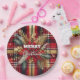 Assiettes En Carton Élégant rouge et or Festif Plaid