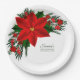 Assiettes En Carton Élégant Rouge Floral Poinsettia Pine Feuilles