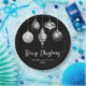 Celebrate the season with striking sophistication. This black and silver Christmas party plate features five hanging ornaments - each uniquely styled with glittering stars, snowflakes, florals, and harlequin patterns. Set against a deep black background with golden sparkles, it brings a luxurious, modern twist to your holiday table. Perfect for festive gatherings, office parties, or upscale winter events.